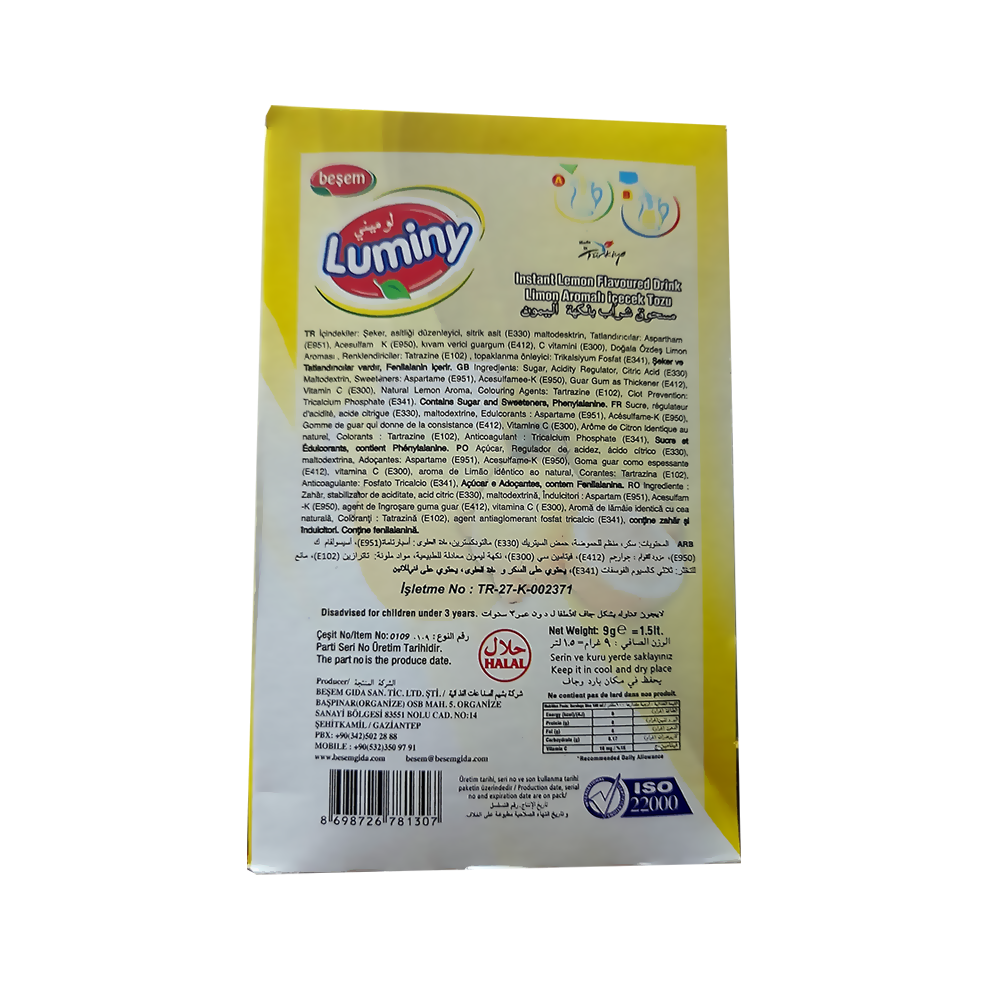 Disfruta del refrescante sabor del Limón con el Refresco en Polvo Luminy. Cada paquete de 9g rinde hasta 1,5 litros, ideal para compartir en cualquier ocasión. Su fácil preparación te permitirá disfrutar de una bebida deliciosa y revitalizante en minutos. Perfecto para acompañar tus comidas o para refrescarte en un día caluroso, ¡no te quedes sin probarlo!