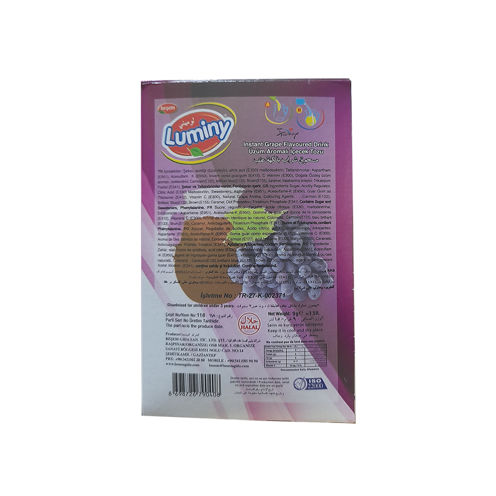 Refresco en Polvo Luminy sabor Uva 9g (1,5 L)