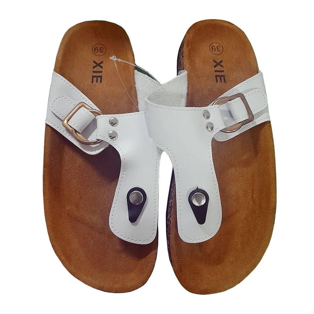 Las Sandalias Prácticas Femeninas XIE en color blanco combinan estilo, comodidad y funcionalidad, ideales para el clima cálido y el uso diario. Confeccionadas en cuero sintético de acabado blanco, presentan un diseño tipo thong con separador de dedo y una correa superior ajustable mediante hebilla metálica, lo que permite un calce personalizado y seguro. Detalles como los remaches decorativos y los acentos metálicos en la zona frontal aportan un toque moderno y versátil que se adapta tanto a atuendos casuales como a looks más cuidados.