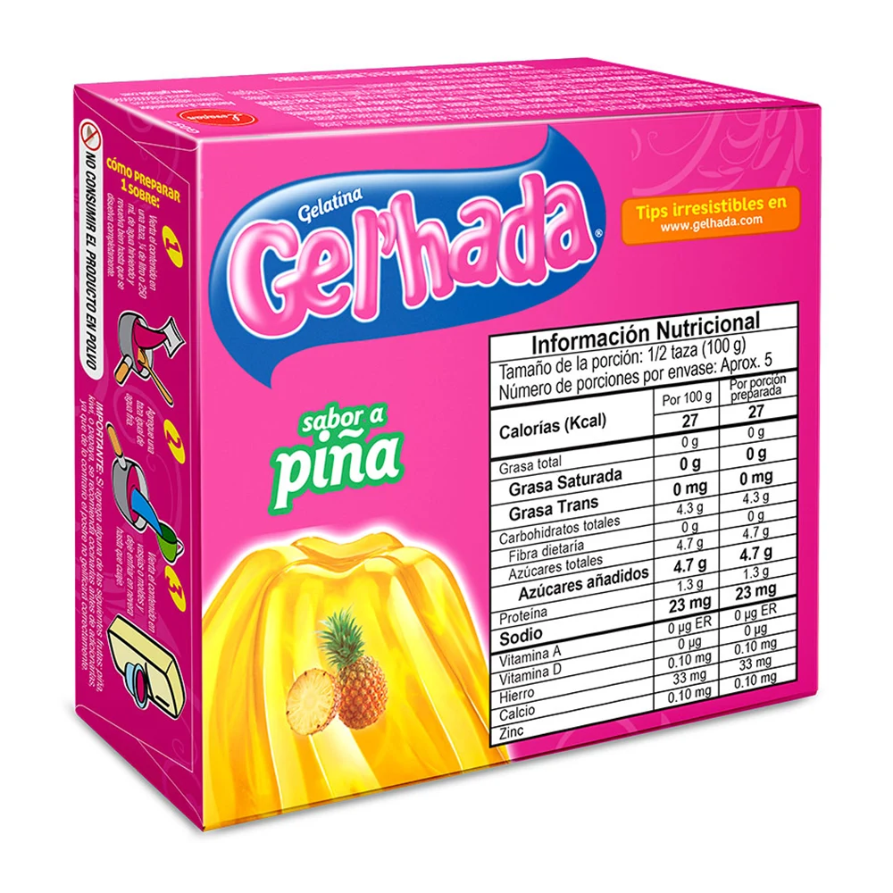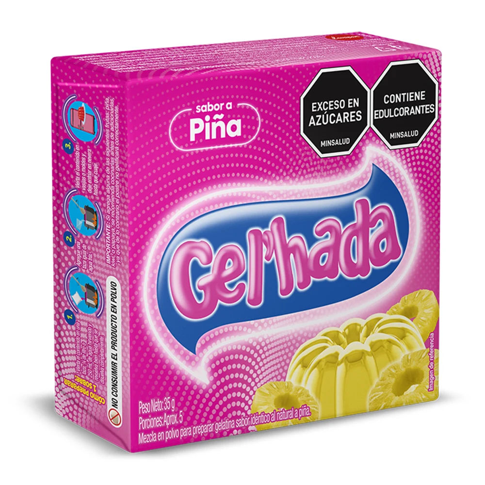 ¡Refresca tus días con el sabor tropical de la Gelatina Gel’hada Piña 35g! Esta mezcla en polvo te permite preparar una gelatina vibrante, con un sabor idéntico al natural que evoca la dulzura y frescura de la piña recién cortada. Ideal para postres ligeros, meriendas divertidas o como toque final en tus creaciones culinarias, su color dorado y aroma frutal la convierten en una opción irresistible para toda la familia.